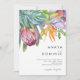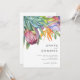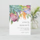 This colourful tropical floral casual wedding invitation is perfect for your modern boho destination, green, purple, peach wedding. Design features an elegant bouquet of classic beach watercolor greenery and flowers that may include sage green eucalyptus, mauve and red protea, blush pink hibiscus, orange and blue bird of paradise, and dark green palm leaf. The design is ideal for a simple, creative, unique travel wedding for spring, summer, fall, or winter! Please find other matching or coordinating wedding stationery in the rest of the collection.