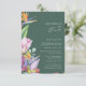 This colourful tropical floral green schedule of events enclosure card is perfect for your modern boho destination, green, purple, peach wedding. Design features an elegant bouquet of classic beach watercolor greenery and flowers that may include sage green eucalyptus, mauve and red protea, blush pink hibiscus, orange and blue bird of paradise, and dark green palm leaf. The design is ideal for a simple, creative, unique travel wedding for spring, summer, fall, or winter! Please find other matching or coordinating wedding stationery in the rest of the collection.