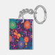 Colourful Tropical Floral Pattern with Bold Blooms Keychain