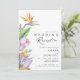 This colourful tropical floral | wedding reception invitation is perfect for your modern boho destination green, purple, peach wedding reception. Design features an elegant bouquet of classic beach watercolor greenery and flowers, including sage green eucalyptus, mauve and red protea, blush pink hibiscus, orange and blue bird of paradise, and dark green palm leaf. The design is ideal for a simple, creative, unique travel wedding for spring, summer, fall, or winter! Please find other matching or coordinating wedding stationery in the rest of the collection.