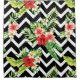 Colourful tropical flowers hibiscus seamless pattern over modern black and white chevron geometric background.