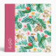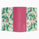 Get ready for summer with this colourful patterned jungle animal design in bright tropical shades of green, pink, and yellow. Island chic design features a repeating pattern of monstera leaves and green watercolor foliage with monkeys, sloths, parrots, and hummingbirds adorned with pink and yellow tropical flowers. Personalize with a name running along the left side near the spine, as well as additional text on the spine.