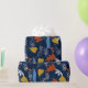 Colourful tropical flowers and leaves seamless pattern with a dark-blue background colour.