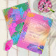 Bursting with bright bold colours, this birthday party invitation features multi-coloured tropical leaves on a gradient sunset background. Easily add your event details using the provided template. Search ID575 to see other products with this design.