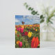 A beautiful spring day at the Wooden Shoe Tulip Farm in Woodburn, Oregon. Colourful tulip field with a hot air balloon in the background. Photo taken April 2018.