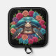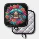 Colourful Turtle Illustration Surrounded by Roses Pot Holder