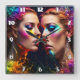 Colourful Twin Faces With Neon Effects at Night Square Wall Clock