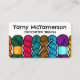 Bold, colourful version of twisted yarn hanks and skeins with crochet hook on these business cards for crocheted yarn crafters, personalized with your choice of text and fonts.