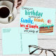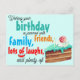 The birthday postcard front offers fun and colourful birthday wishes and the back offers room for a handwritten note with template return address and "Happy Birthday to You!" vertical divider. Personalize, delete or edit using the design tool to select a font style, size and colour you prefer. If you don't want to send it openly with your personal message you can add an envelope with the order.