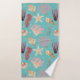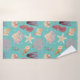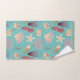 Colourful watercolor illustrations of seashells and underwater plant life create a pattern on aqua background
