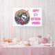 Colourful rainbow unicorn and flowers with a rainbow background personalized girl's birthday party banner.