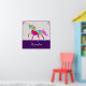 Magical unicorn poster. Colourful customized art for your child's room or baby nursery with a vibrant design. This personalized design will be the perfect finishing touch to your little one's nursery, bedroom or play room. Or give the perfect baby shower gift! Simply use the customize option to personalize the print with your child's name or whatever you wish. You can also change the background colour. This fun rainbow unicorn design comes on a variety of wall art sizes and styles, and there are handy frame options available.
