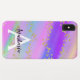 Girly and glam iPhone case with a colourful unicorn rainbow background, and gold glitter sparkles confetti. Personalize with your custom name in black and your monogram initial in white. You can change the text colour and font style and size using the customize option.