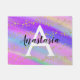 Girly and glam doormat with a colourful unicorn rainbow background, and gold glitter sparkles confetti. Personalize with your custom name in black and your monogram initial in white. You can change the text colour and font style and size using the customize option.