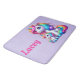 Pretty, colourful unicorns, monogrammed, on a pink background with their name, on this bath mat.