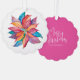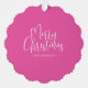 These colourful Christmas ornaments features a watercolor poinsettia. The ornaments reverses to feature the words "Merry Christmas" in hand lettered typography over a vibrant pink background. Use the template fields to add your custom greeting. A charming choice for gift giving this holiday season. To see more designs like this visit www.zazzle.com/dotellabelle