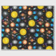 Original fine art pattern of planets, sun, moons, stars, nebulae, galaxies and more by artist / designer Carolyn McFann of Two Purring Cats Studio printed on a quality roll of wrapping paper for Astronomy and space fans of all ages.
