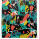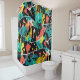 Colourful urban graffiti patchwork pattern shower curtain featuring bold abstract blocks, expressive brush strokes, scribbles, stars, and mixed-media textures in bright blue, yellow, pink, orange, and black. Energetic and edgy with a modern street art aesthetic, this seamless design is ideal for graffiti art lovers, maximalist style fans, creative teens, and contemporary art enthusiasts.