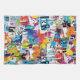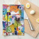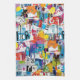 Colourful urban graffiti patchwork pattern kitchen towel featuring bold abstract blocks, expressive brush strokes, scribbles, stars, and mixed-media textures in bright blue, yellow, pink, orange, and black. Energetic and edgy with a modern street art aesthetic, this seamless design is ideal for graffiti art lovers, maximalist style fans, creative teens, and contemporary art enthusiasts.