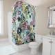 Colourful urban graffiti patchwork pattern shower curtain featuring bold abstract blocks, expressive brush strokes, scribbles, stars, and mixed-media textures in bright blue, yellow, pink, orange, and black. Energetic and edgy with a modern street art aesthetic, this seamless design is ideal for graffiti art lovers, maximalist style fans, creative teens, and contemporary art enthusiasts.