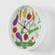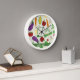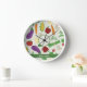 Colourful Vegetables Wall Clock is a delightful fusion of functionality and artistic flair that's sure to brighten up any kitchen space. This charming clock features a captivating vegetable pattern, bursting with vibrant hues and intricate details, making it a standout piece for newlyweds, home cooks, and vegetarians alike. This Veggies clock not only serves as a reliable timekeeper but also doubles as a striking decorative accent. Its colourful design celebrates the beauty of nature's bounty, adding a touch of freshness and vitality to any culinary environment. Customize it with a family name or favourite cooking quote. Part of the Veggie Love collection...look for coordinating gifts and kitchen ware.