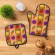 Brighten up your cooking with this fun vegetable pattern oven mitt and pot holder set. Perfect for everyday baking, cooking, or as a unique kitchen gift for food lovers. Durable, heat resistant, and stylish. Personalized with initials.