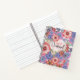 This personalized spiral notebook radiates creative beauty and a personal touch. The cover is a vivid canvas of highly crafted floral pattern that blooms in dazzling shades of red, pink, purple, and blue. The flowers are intertwined with delicate green foliage, creating an intricate botanical tapestry that is both visually delightful and captivating. The notebook features a black spiral binding on the left side, adding a modern touch to its traditional design. In the centre of the cover, there's a white opaque area where "Catherine's Journal" is elegantly inscribed in cursive handwriting. This customizable space adds a personal touch, making it not just a notebook, but a personal journal that can capture one's thoughts, ideas, and memories.