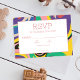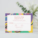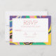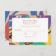 Modern colourful bold abstract rainbow artsy shapes trendy with round frame personalized wedding RSVP card. Pink purple yellow blue colour palette. This card is easily editable. If you need help with the customization of this product or you need more matching products for this collection kindly message me via Zazzle.