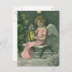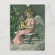Stylish, full colour picture of a little cherub in a pink dress with her wings white as snow, looking whimsical and adorable, sitting on a sleigh in a blue winter scenery. Cleaned up to decorate any item in a stylish and modern way. Add your own text to this lovely Victorian Christmas image if you please or just enjoy the detailed mythical creature colour art.