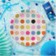 Colourful vintage geometric dots - retro design - cream white background and colourful dots in pink, yellow, green, blue and orange.