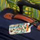 Pleasantly surprised at the quality of the luggage tag. It was exactly as shown and my daughter will be pleased. The address label on the back of the luggage tag was neat and clear.