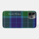 Stylish iPhone case mate phone case done in a traditional blue and green Scottish tartan plaid of the Wallace clan. White text running vertical, on the left side, is ready to personalize. Stylish and great way to protect your smart phone, and makes a great gift idea.
