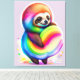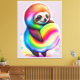 Colourful Beautiful Watercolor Cute Baby Sloth Poster With Rainbow Colours Watercolor Style Art,