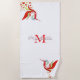 A stunning red, green and blue watercolor painting of a modern bird with a red monogram and a personalized name written in taupe. Edit or delete the name and monogram in the text boxes to personalize. View other products in this collection in our store.