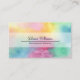This business card features a hand painted watercolor design with your name and title surrounded by colourful clouds in shades of pink, yellow, blue, and green. The pretty whimsical design is perfect for someone working with children, or anyone who wants a bright cheerful look. Name and tag line on the front with contact info on the back. The back also has space for you to enter a url to display your own QR code.