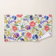 Unique towels with colourful patterns of watercolor painted illustrations of butterflies, bees, ladybugs, and field flowers: lavenders, pansies, poppies, and more.