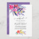 Sophisticated brightly coloured wildflower watercolor online long distance virtual wedding ceremony invitation with accents of plum, ultra violet and sage green designed to be quickly and easily customized.