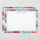 Personalize these feminine watercolor floral note cards with your name to keep on hand for dashing out attractive thank you notes, keeping in touch, and sending handwritten notes to others. This tasteful design has lovely colours of fuchsia (hot pink), turquoise aqua, purple, and light shades of pink in a floral frame surrounding a white rectangular centre area for writing your notes. The text template is ready to personalize with your name, business or other desired text.