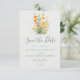 This design features bright watercolor florals in vibrant shades of yellow, orange, green, and teal. Perfect for spring and summer weddings.