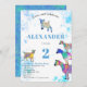 Let the party begin with this fun watercolor splash collection of colourful, goat watercolor illustrations in vibrant pink, purple, blue, orange, yellow and aqua. A cute farm animals 2nd birthday party invitation with baby goats and goats standing on goats. This fun party invitation is easy to personalized to create a unique party invitation suitable for children and adult goat lovers. Colourful psychedelic goat original illustrations by artist Catherine Sweetman