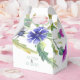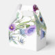 This wedding favour box is absolutely stunning! It features a beautiful floral garland made up of vibrant and colourful wildflowers in shades of purple and blue. The garland is delicately arranged with bluish green leaves, adding a touch of elegance to the upper part of the box. The use of watercolor technique gives the wildflowers a soft and dreamy appearance, making this favour box a truly eye-catching piece. It's perfect for adding a pop of colour and charm to any wedding celebration. Your guests will surely be delighted to receive such a lovely and unique keepsake.