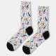 This sock design features delightful birds and whimsical flowers that dance across a fresh white backdrop. Perfect for bird and nature lovers.