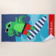 Have a super time with our Fun, Colourful, Surfing Alligator Colour Block Beach Towel! This bright, bold, graphic features a cute alligator surfing on a large sea blue wave, all while wearing his cool sun glasses!. Personalize with your favourite beach-goers name and bring it to the pool, camp or beach all summer long. Check out Benson Hall, on Zazzle, to see our many great designs and products! See ya later Alligator!