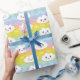 Add a cute and colourful accent to your gifts with this kawaii clouds wrapping paper. It features emoji clouds with colourful waves pattern. This cloud pattern wrapping paper will be perfect for baby shower and birthday favours and gifts.