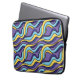 Colourful waves laptop sleeve with a pattern featuring seamlessly tiled funky abstract waves in yellow, blue and purple colours. This fun trippy geometric design is drawn in a retro modern style.