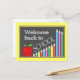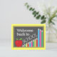 This Welcome Back To School postcard features a chalkboard theme accented with coloured pencils and a red apple. The backside features customizable text for you to add your personal message.
