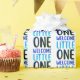 Wrapping paper to welcome a new baby, with the diferent blue tones phrase "Welcome Little One" on a solid white background, or if you prefer, you can customize the background to the colour of your choice. It's a simple, yet modern and fun design.