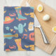 The images on this colourful and fun kitchen towel include a guitar, beer mug, cactus, sombrero, cow skull, cowboy boot, and more! The western images are placed on a medium blue background. Be sure to see the matching products in our store.