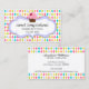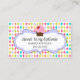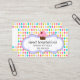 © 2011 Socialite Designs. Our whimsical cupcake bakery business card design has a colourful diamond background, a cupcake with pink icing and cherry on top. The doodle banner is for your business text. Do you require HELP with customizing this business card? Please do not hesitate to contact me with your requirements.