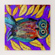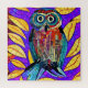 Colourful owl tiled mosaic whimsical folk art owl and leaves.
